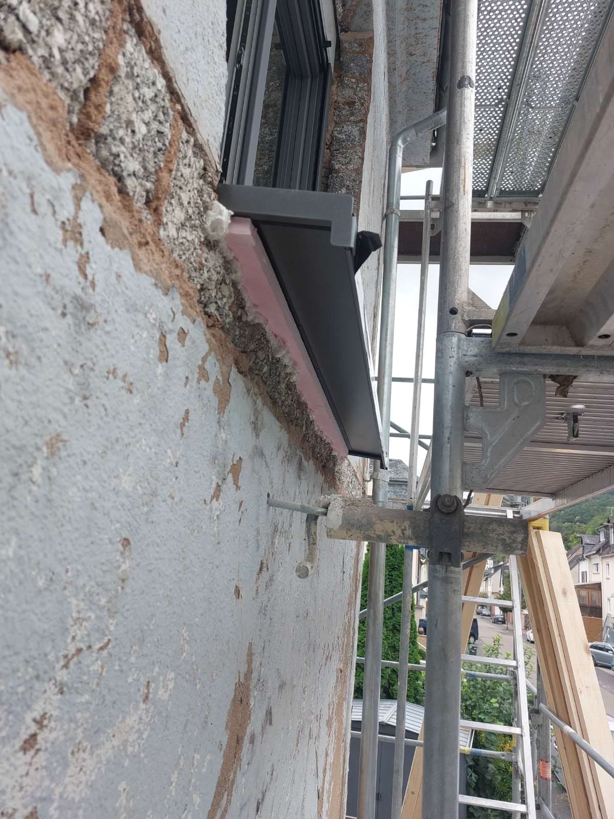Im Rahmen einer umfassenden Sanierungsmaßnahme in Briedel wurden die alten Fenster und die Haustür durch moderne Elemente mit 3-fach Verglasung ersetzt. Zusätzlich kamen neue Rollladenaufsatzkästen und Aluminiumfensterbänke zum Einsatz – für optimale Energieeffizienz und ein sauberes Erscheinungsbild.