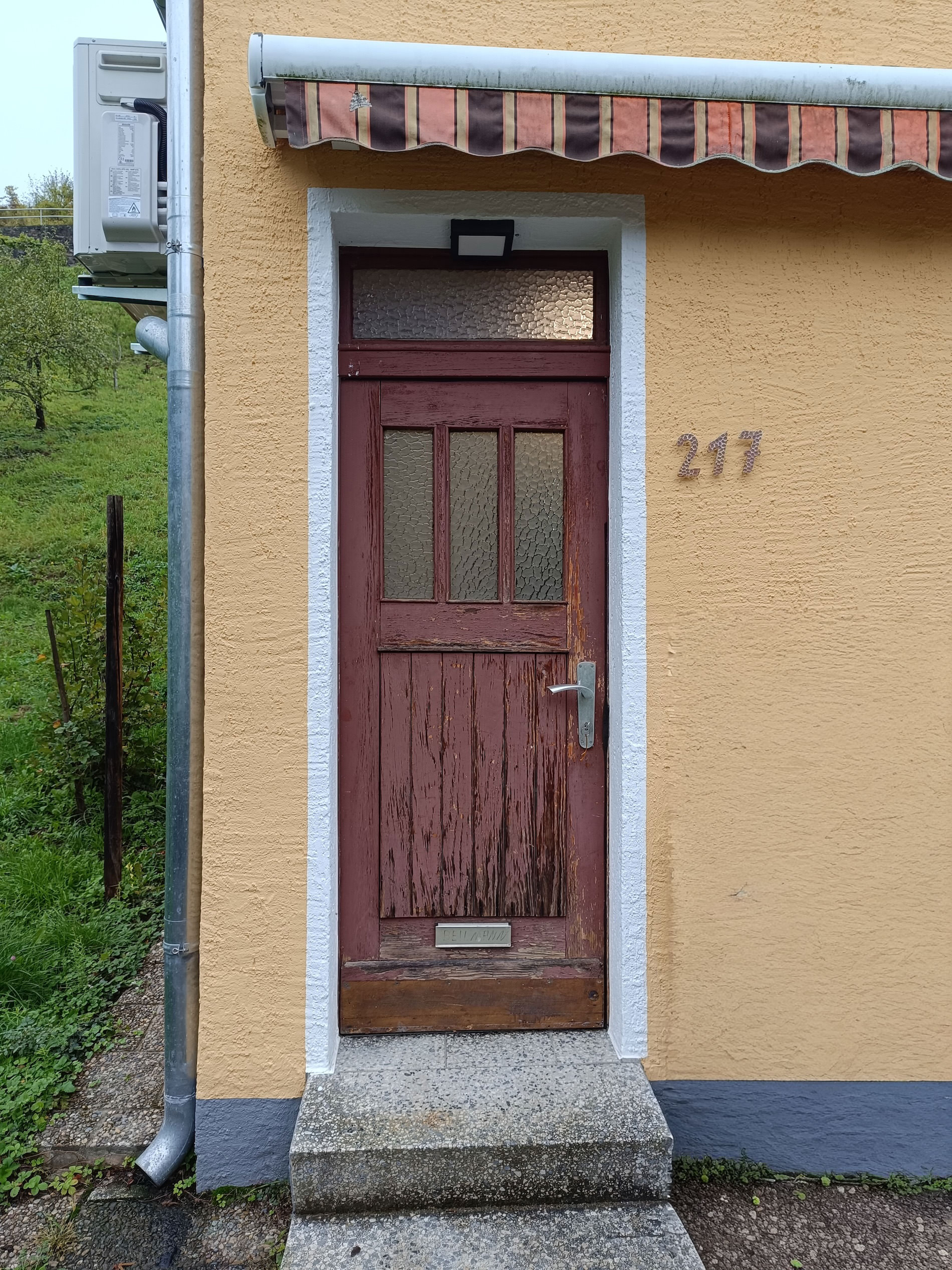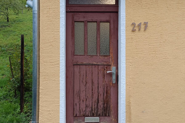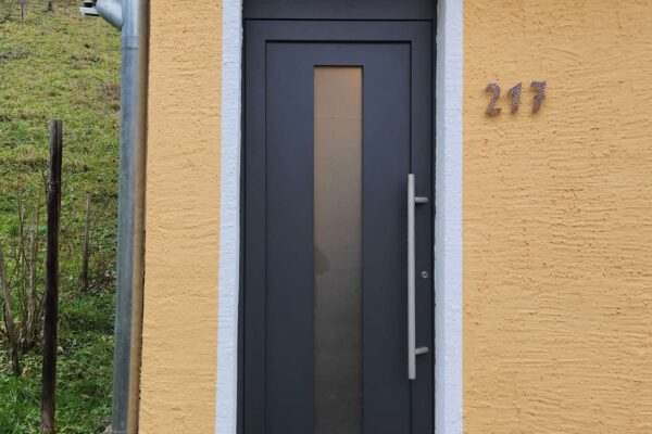 Hier wurde eine alte Holzhaustür durch eine moderne Aluminium-Haustür ersetzt. Der direkte Vergleich zeigt deutlich, wie sehr sich der Eingangsbereich dadurch verändert hat: zeitgemäß, pflegeleicht und optisch aufgewertet.